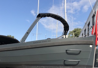 Top speed: apprx. 30kt (55kph) / 6,5kt (12kph) electric | Range: 135 Nm (250 km)